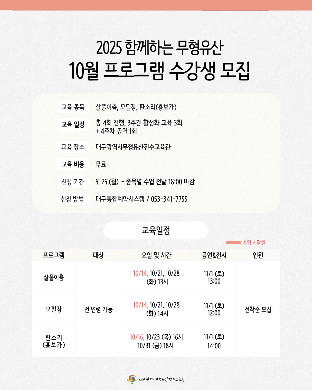 ‘2025 함께하는 무형유산’ 10월 프로그램 참여자 모집!